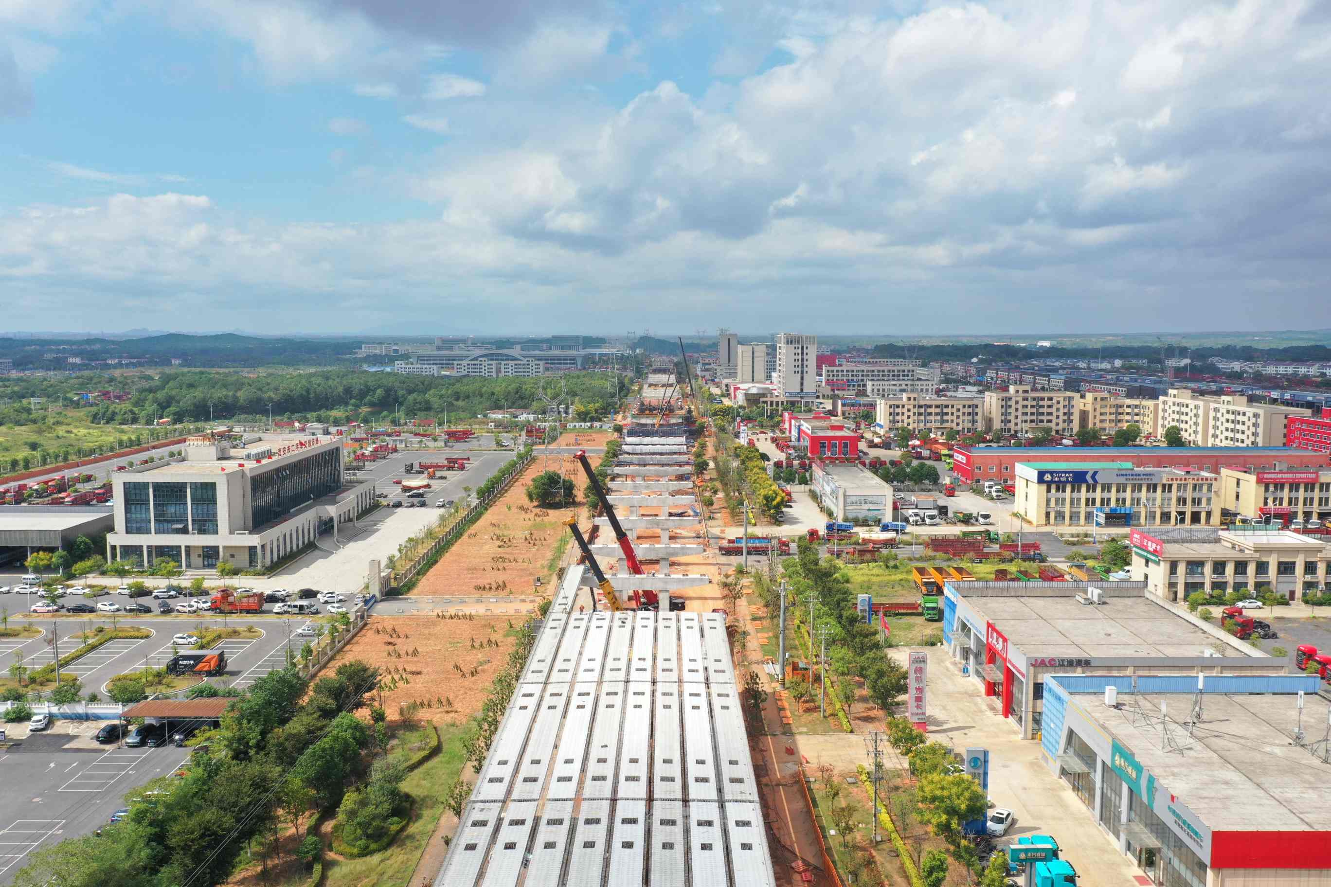 G320高安境內(nèi)改線(xiàn)項(xiàng)目工程建設(shè)“加速跑”,森澤大道高架互通梁板架設(shè)如火如荼 ——森澤大道高架互通上部結(jié)構(gòu)施工進(jìn)入攻堅(jiān)沖刺階段